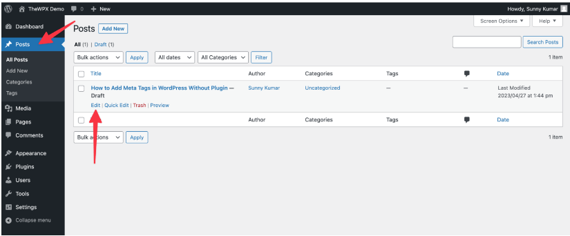 - Go to “Posts,” and under that, select “All Posts”.