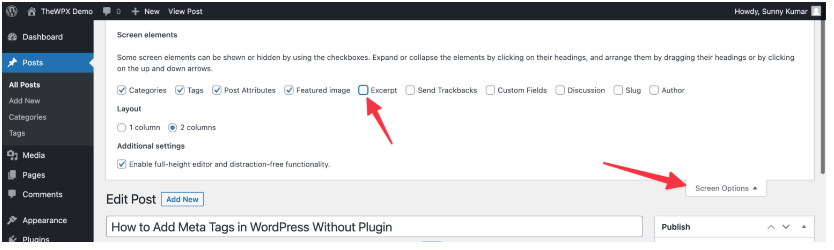 - A drop-down menu will be opened; see the “Excerpt” option and enable that.