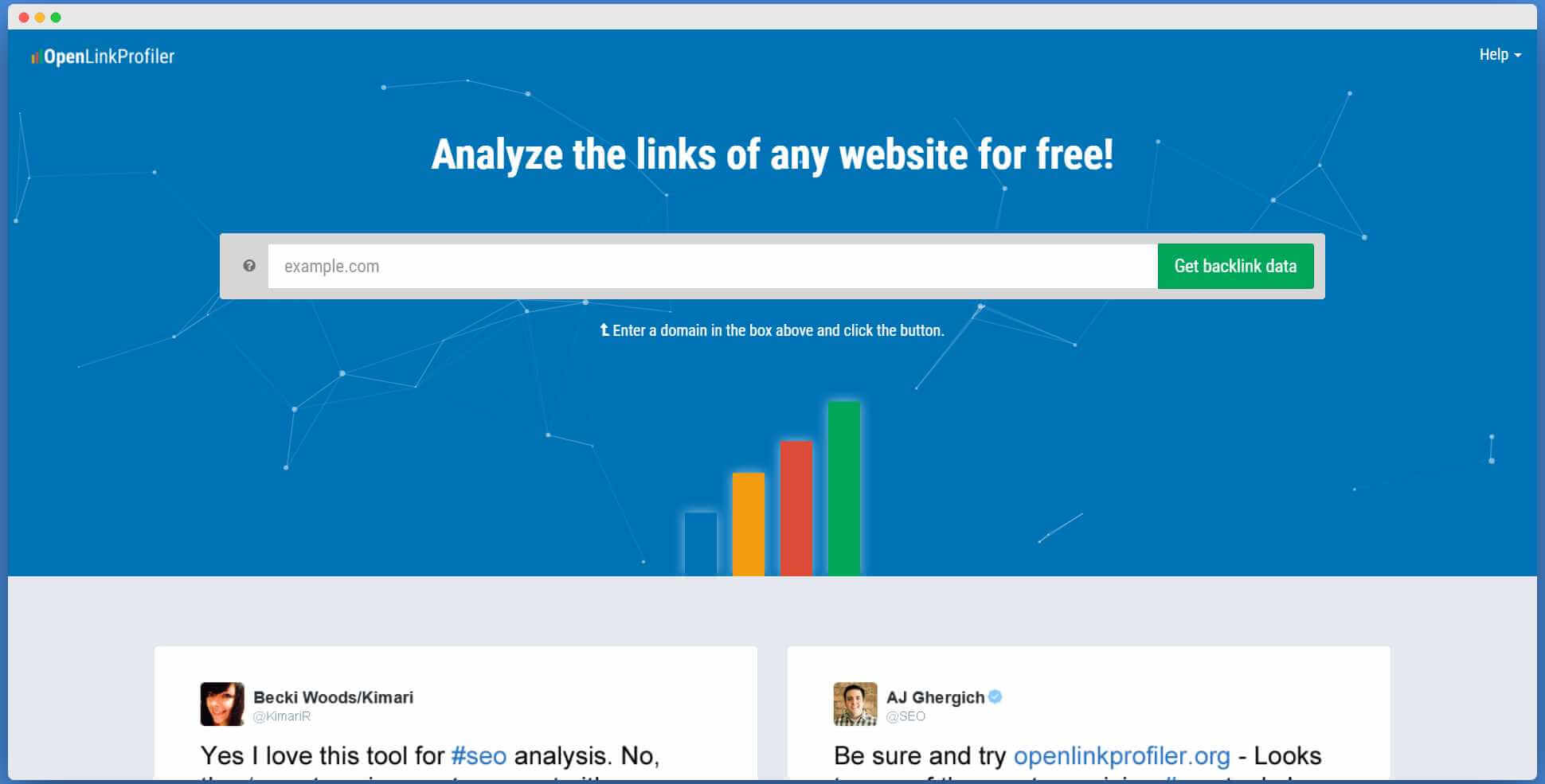A free link research tool- open link profiler helps you to check the backlinks of any website. This is very easy to use. All you need to do is to enter the site address in the search bar, and then it will give you an immediate link analysis of that site.