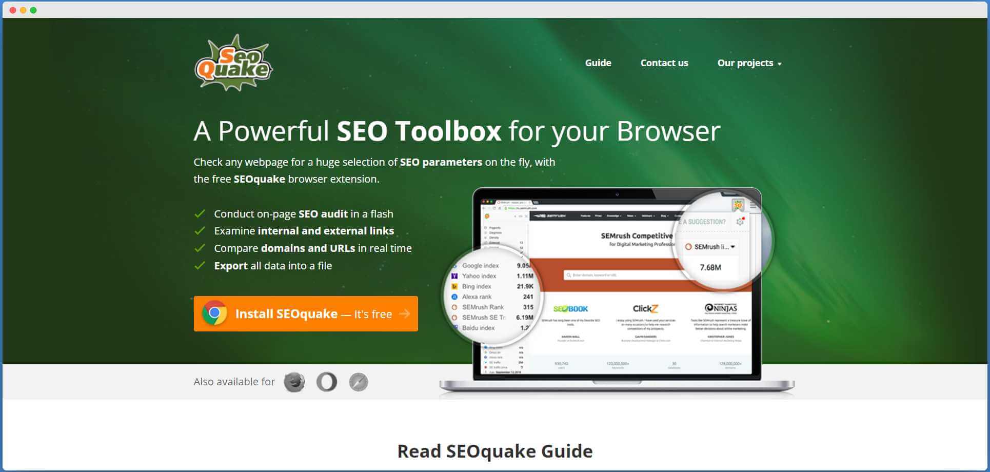 The SEO quack is another valuable SEO tool to manage your website’s growth and performance on the search engine. You can view the complete analysis of your website within a few clicks. You can simply download the tool and just enter your website URL in the box, and a detailed report of your website will be displayed to you.