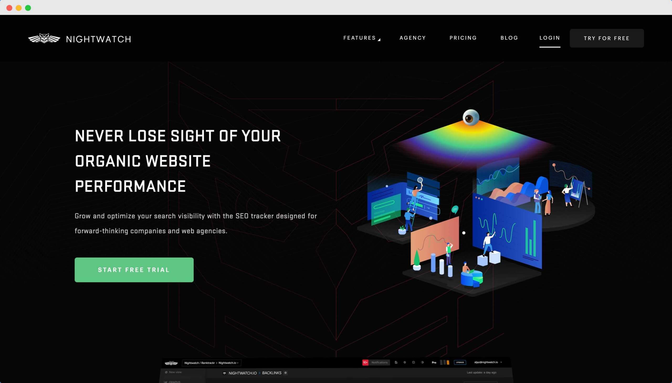 Nightwatch is another valuable all-in-one SEO tool that makes it easy to track your rankings, customize reports, monitor backlinks, perform site audits, and more. With its intuitively designed dashboard, you can quickly view your data on graphs and in segments. It’s a perfect choice for companies and professionals looking to scale up their businesses.