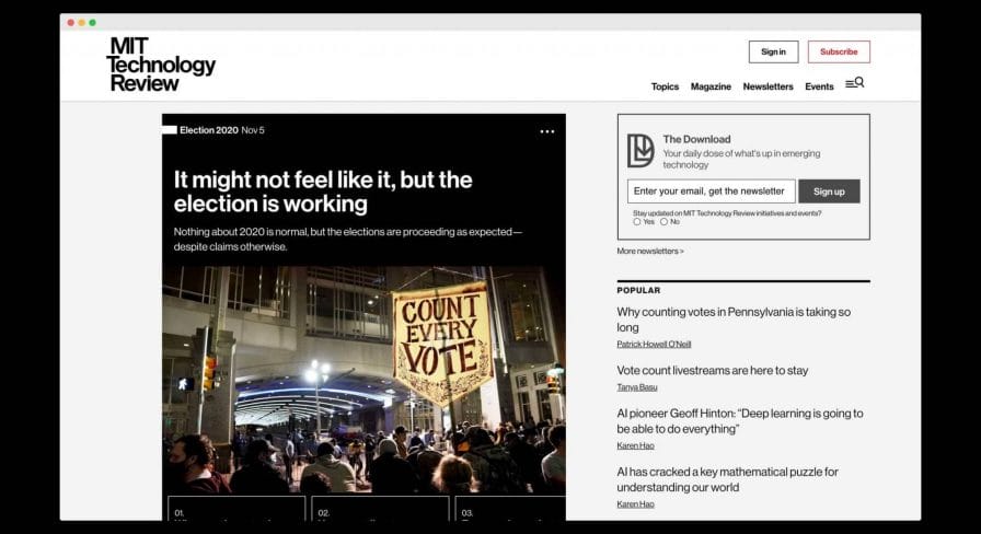 MIT Technology Review is a magazine wholly owned by the Massachusetts Institute of Technology. It was the first issue in 1899. The site developers are also very creative in providing such efficient content in a very consistent manner.