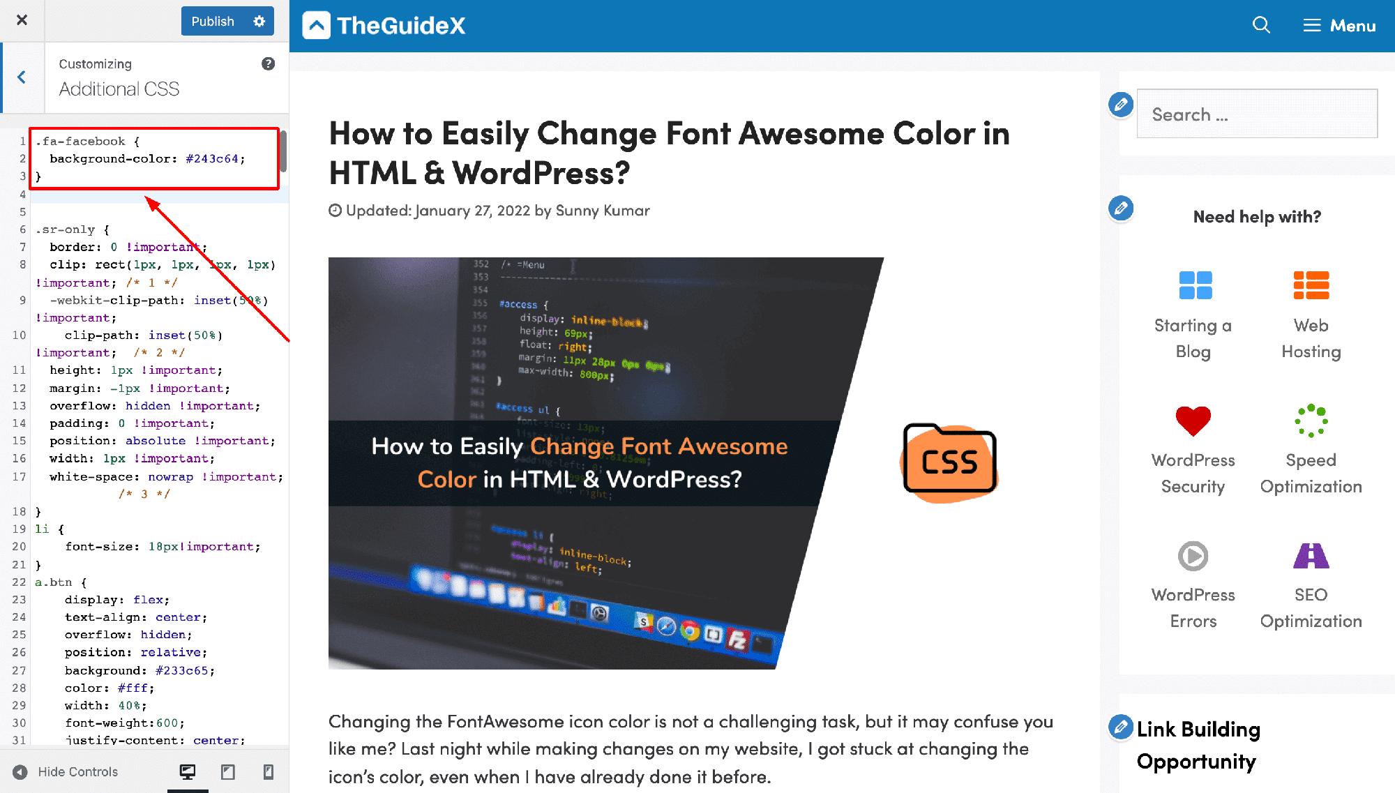 As soon as you add CSS code to your WordPress website, you will see the changes. Click on “Publish,” and you are done.