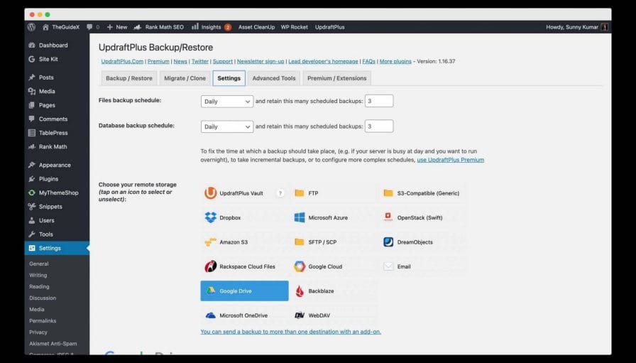 There are many backup plugins available, both free and paid. One popular backup plugin among professionals is Updraft. It allows you to back up your websites online. You can save the backup on various cloud platforms like Google Drive and Dropbox.