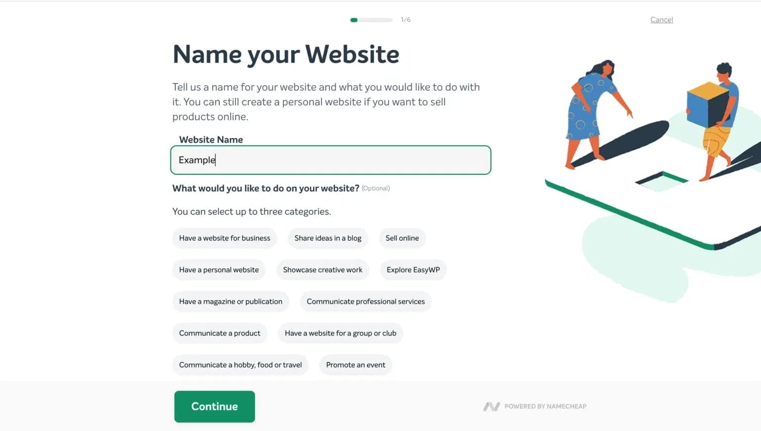 When you click on the above link, you’ll be redirected to the Namecheap website. In setting up your website, give it a name. If you have not yet chosen a plan, then it will suggest choosing one ideal for your needs.