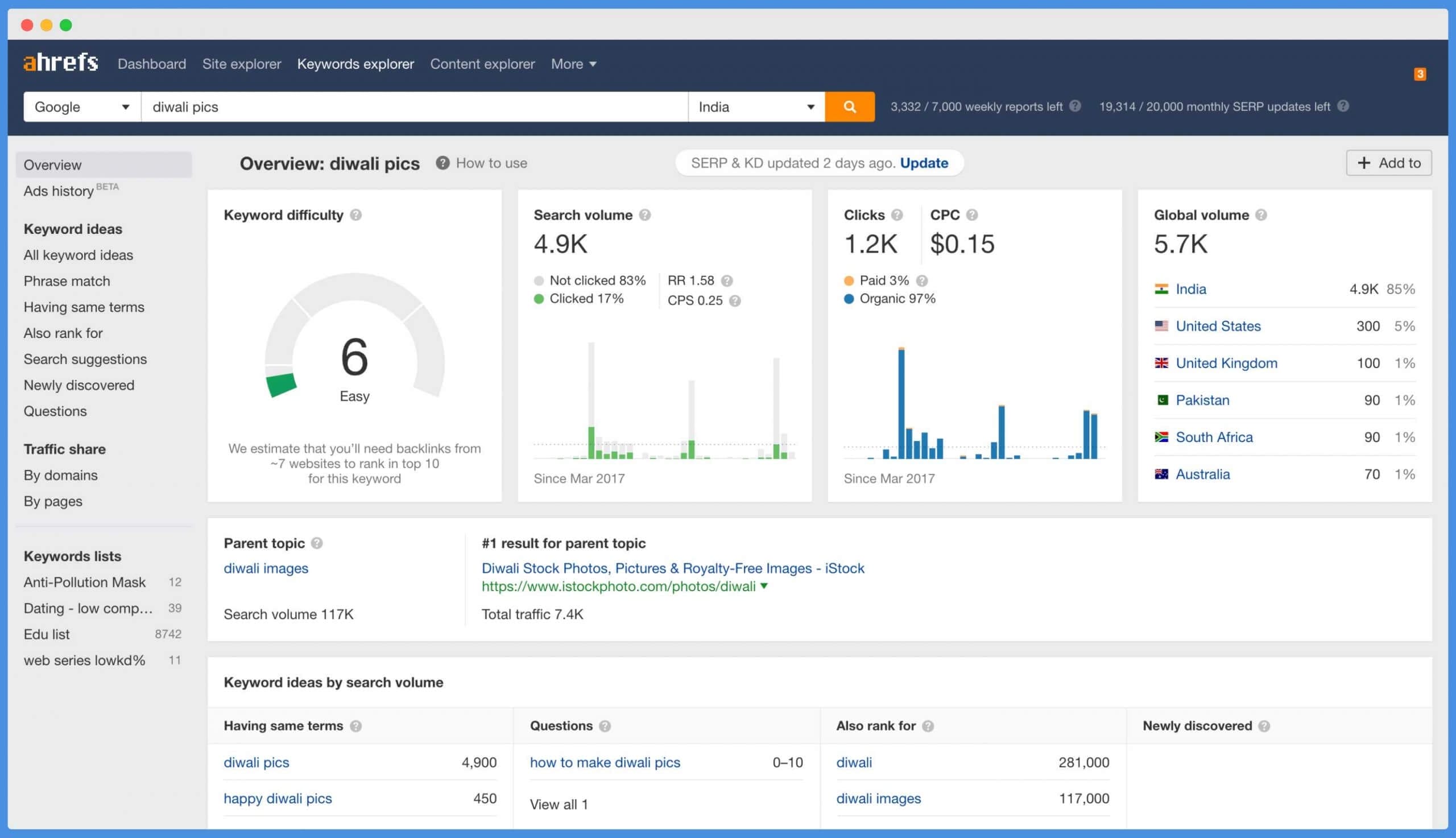And when I checked the same keyword using Ahrefs, I obtained these results.