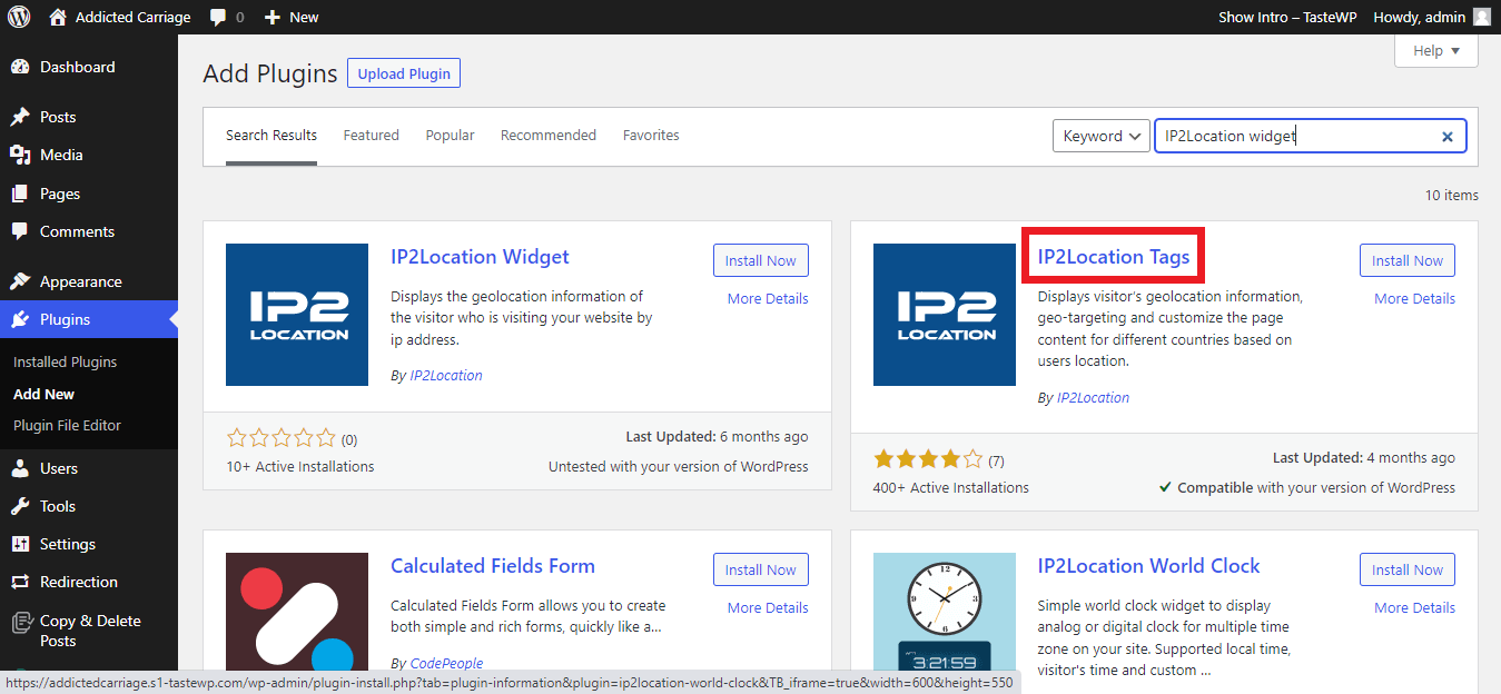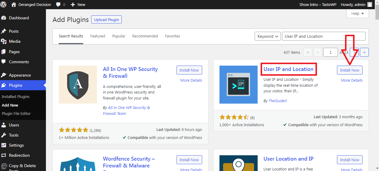 Now, search for the “User IP and Location” plugin in the search bar. You will get a variety of plugins. Find the correct plugin you need and press the “Install Now” option.