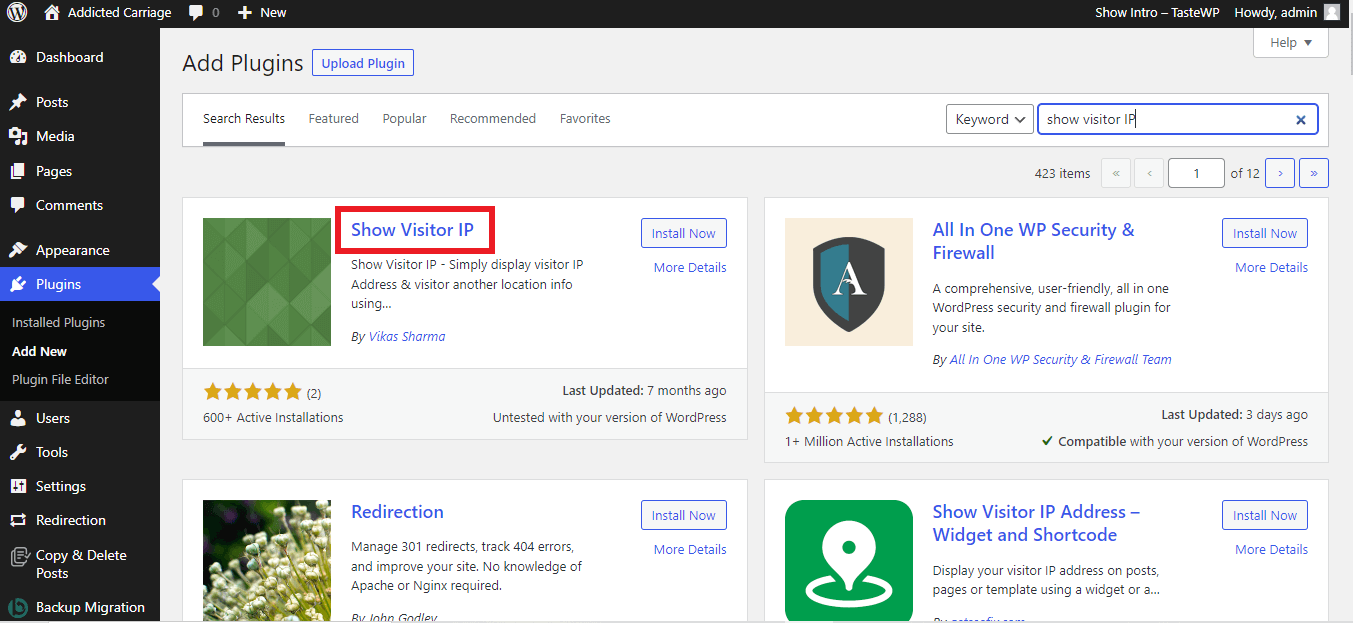 For installation, you can add it as always by going to the Plugins -> Add new -> Show IP address directly from the WordPress site.