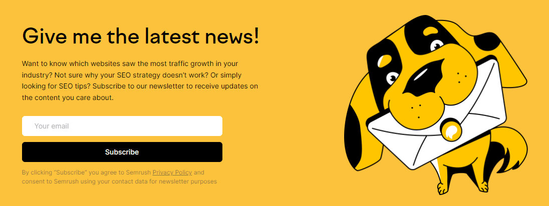 For instance, why not create online sign-up forms and pop-ups to collect relevant email addresses on your site? Semrush, for instance, incorporates a sign-up form into its blog: