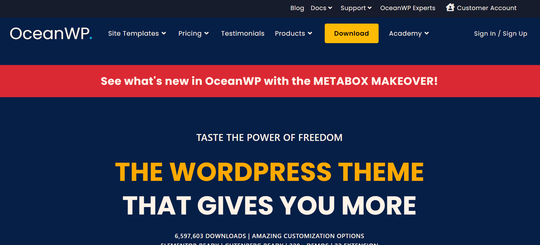 OceanWP is a well-known and dependable theme created in 2016 by the OceanWP team. With over 700,000 active installs, it is the second most popular demo content theme in the WP Repository. This theme’s distinguishing characteristic is its compatibility with all common website builders. OceanWP has a setup wizard that lets you quickly choose which demo to import and how to create your new site.