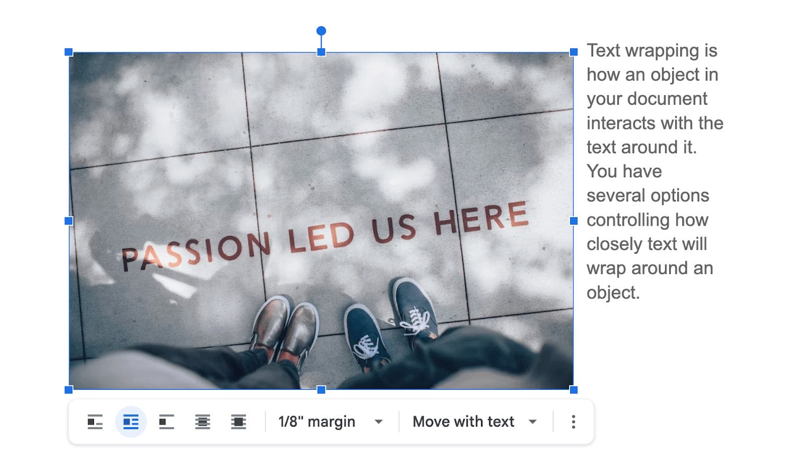 The Text Wrapping feature in Google Docs is off by default, and the words tend to follow an inline arrangement. Text wrapping will help you save space and make the document look tidy.